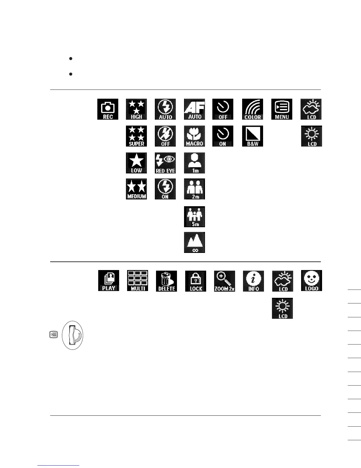 between Record and Playback mode, and make a selection.