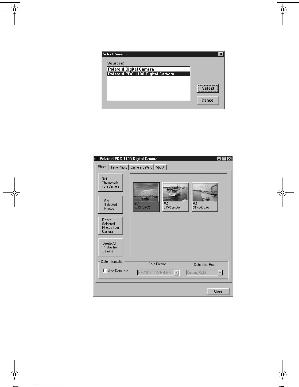 The Polaroid PDC 1100 TWAIN software opens. From