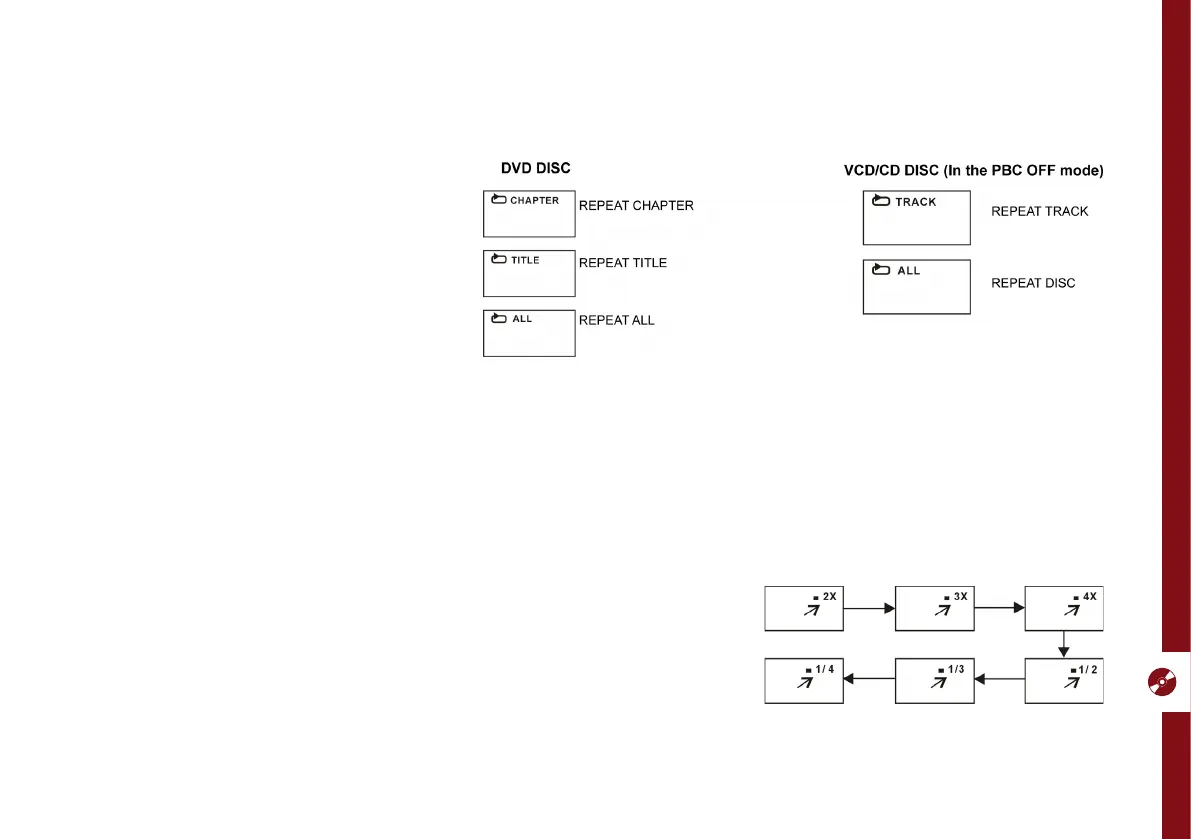Press the REPEAT button during playback, it will repeat play one chapter or one title (for DVD disc), or repeat play