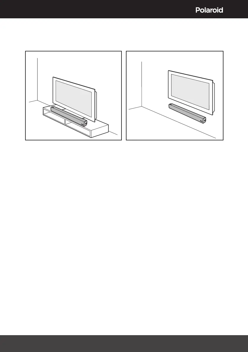 Wall mounted: If your TV is fitted to the wall, Mount the Sound Bar directly below