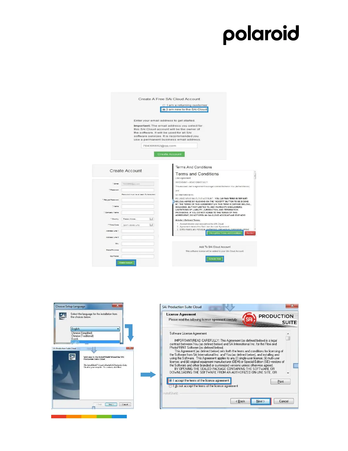 • Select "I am a new user of SAi Cloud", input the email address and create the account. After the