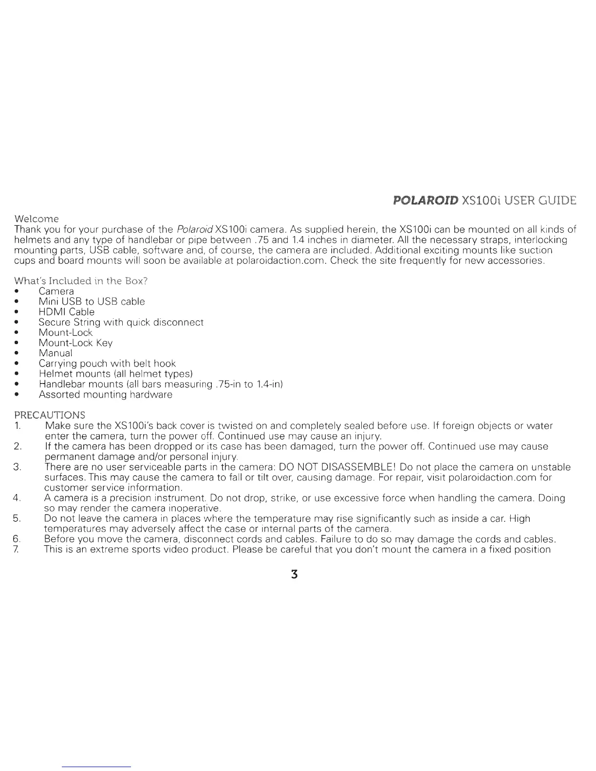 POLAROID XS100i USER GUIDE