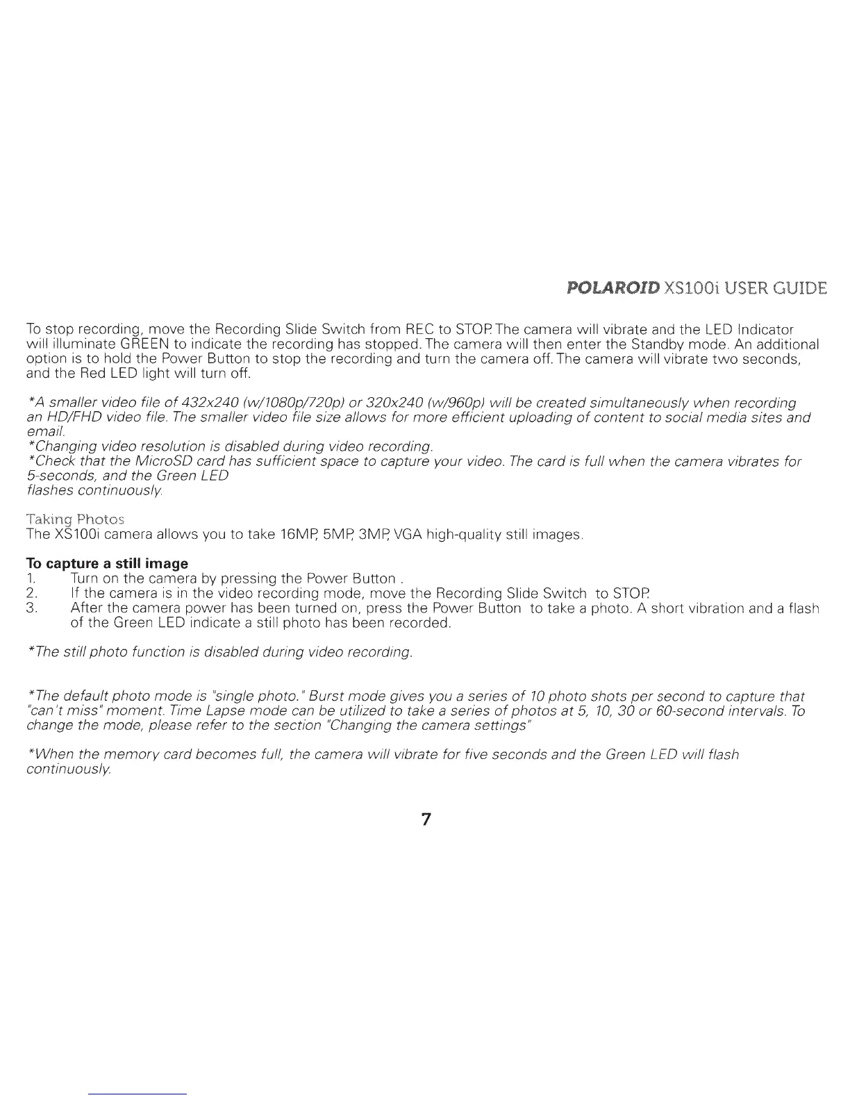 Green LED indicate a still photo has been recorded.