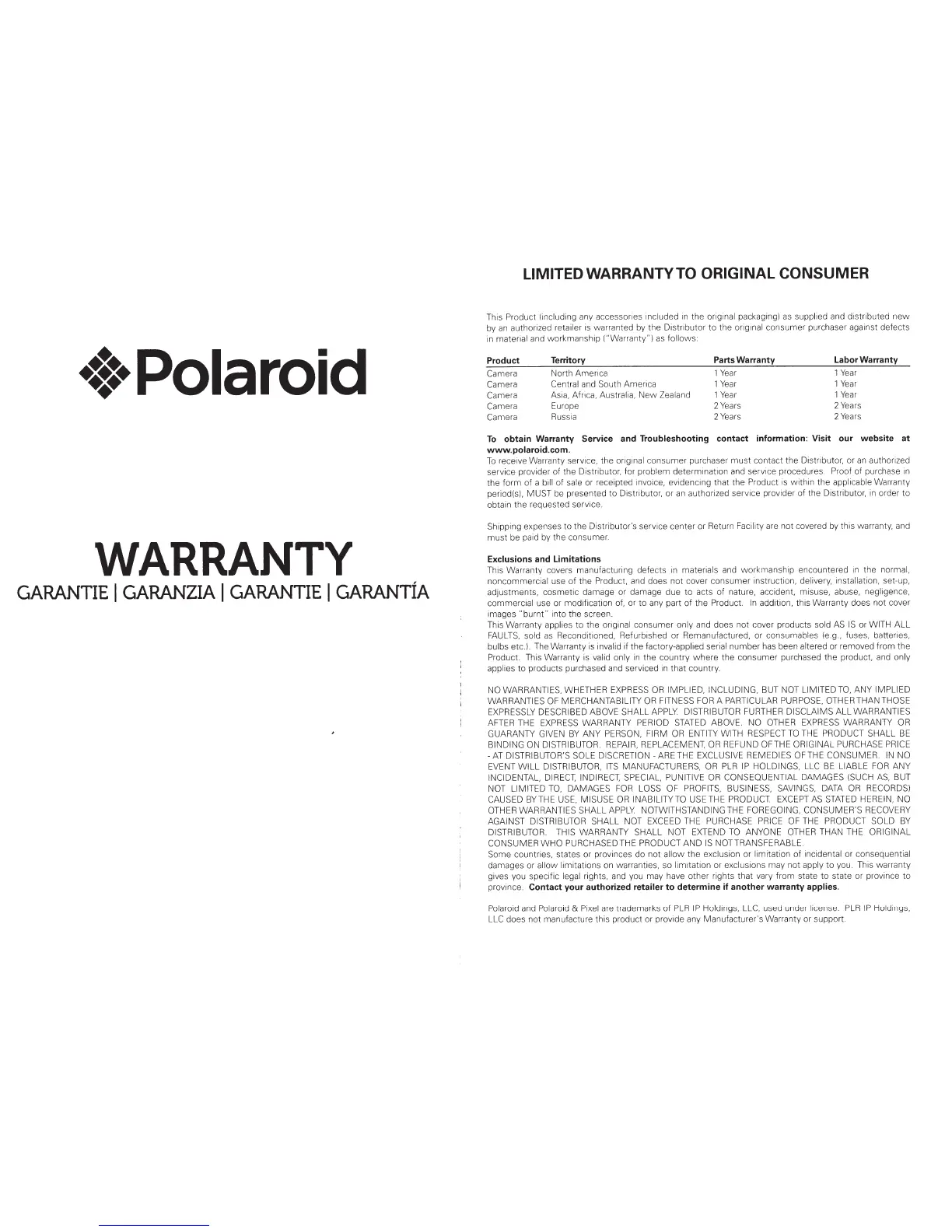 LIMITEDWARRANTYTO ORIGINAL CONSUMER
