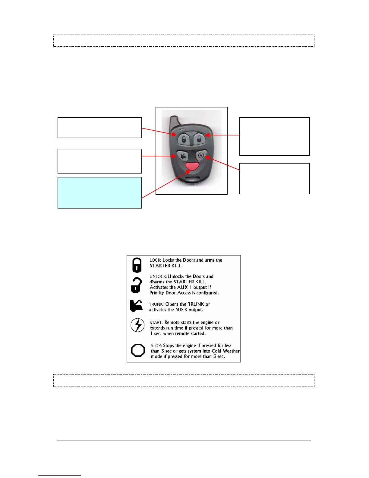Your Remote Car Starter is equipped with a 5-button multi-channel remote control. It can operate