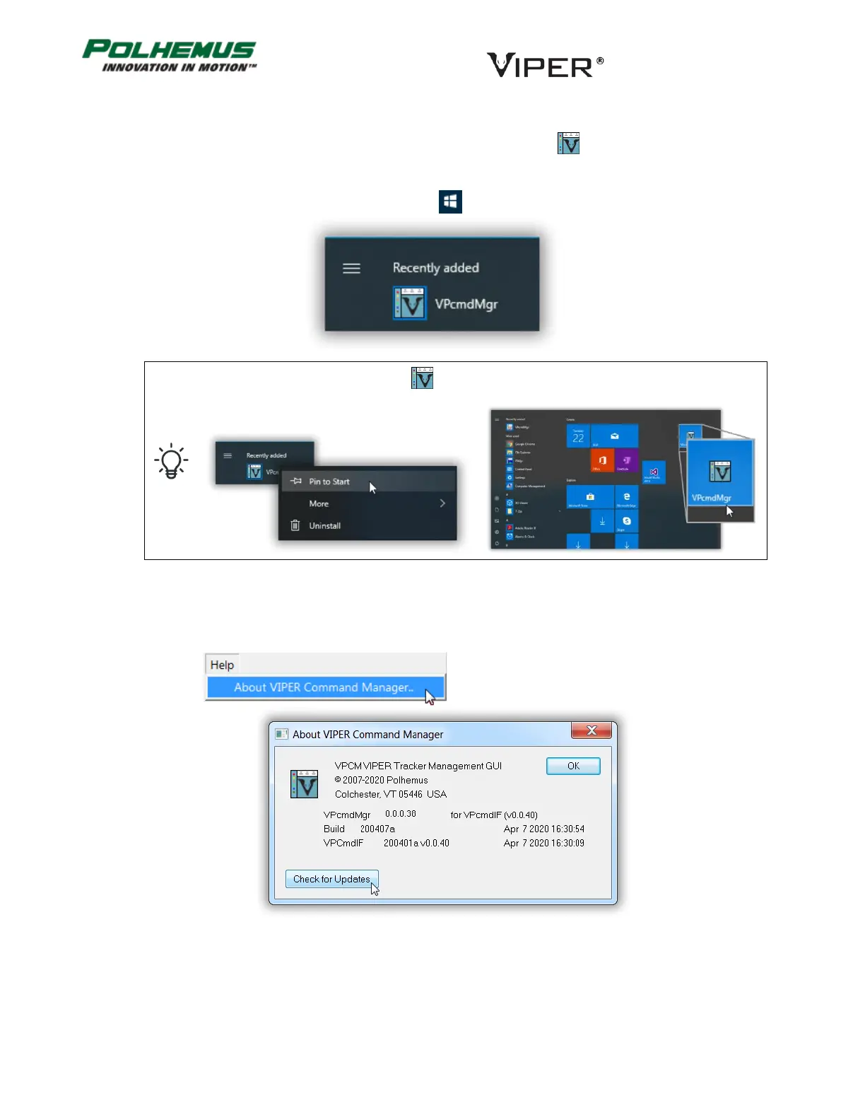 After installing VIPER™ Command Manager for the first time, check for available updates to the program.