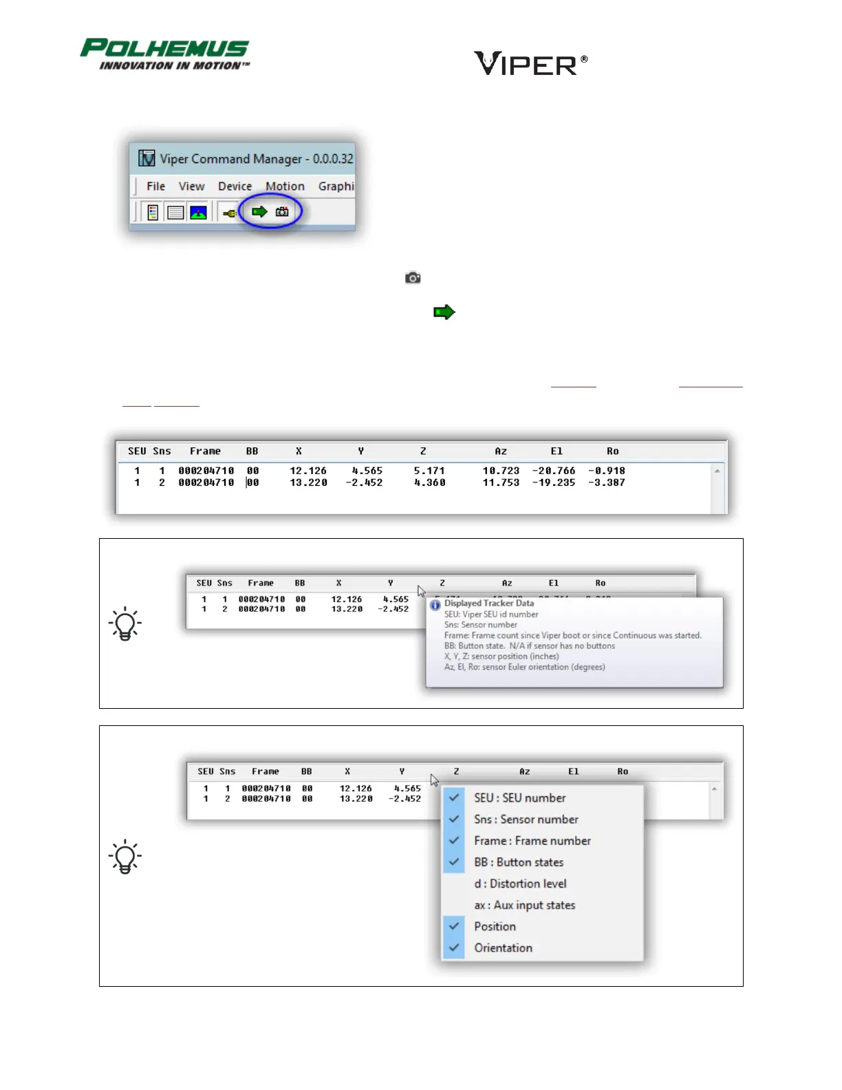 By default, VIPER™ outputs SEU number and Sensor number, Frame Number, Position in inches and Orientation