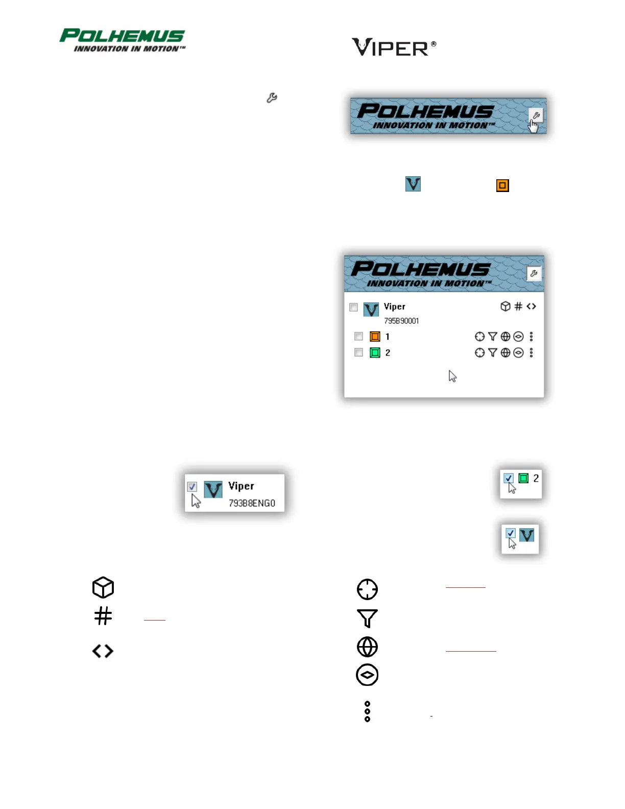 each connected Sensor. A series of control icons for configuring VIPER™ are displayed next to these.