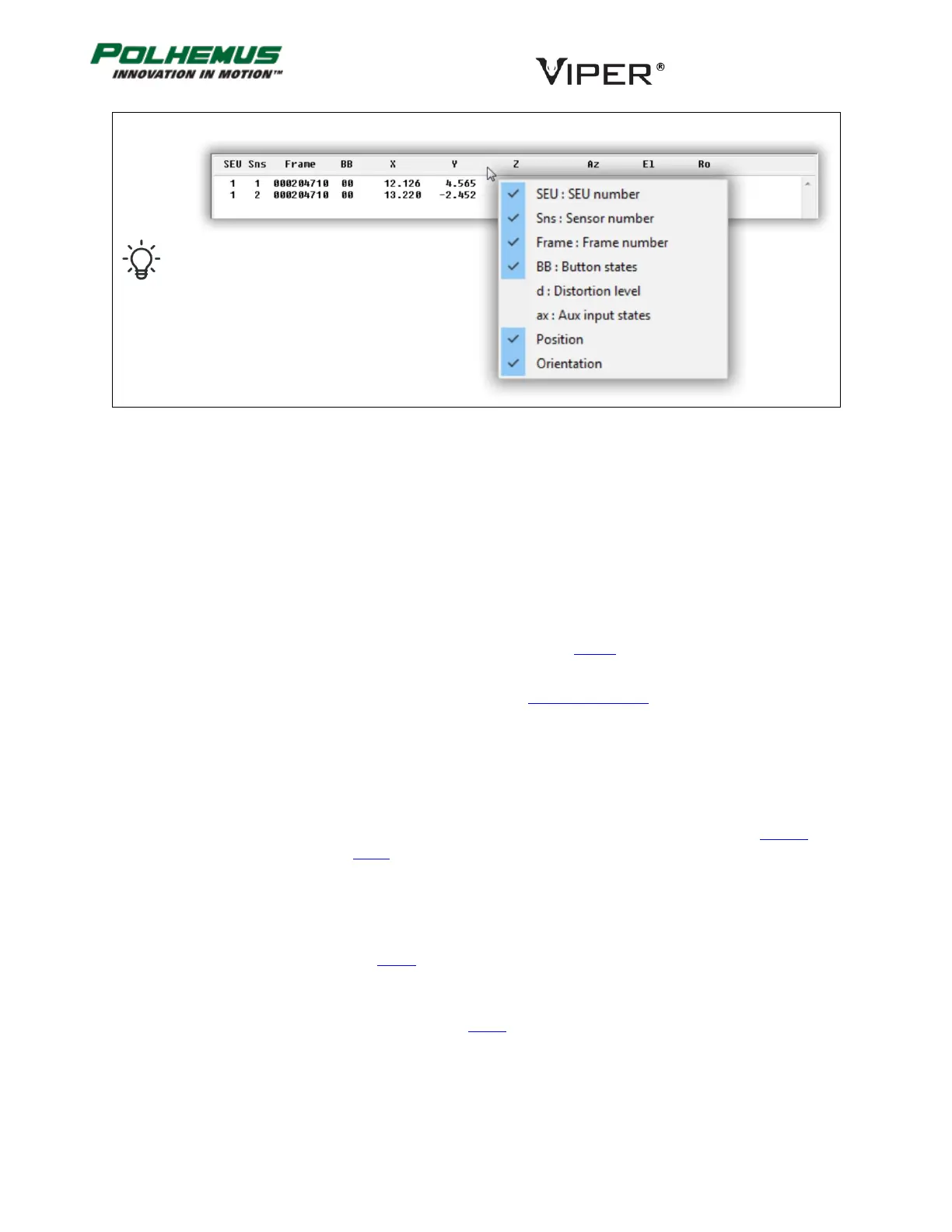 VIPER™ has the ability to output P&O in an alternative data mode that includes Sensor acceleration in X, Y, Z axes