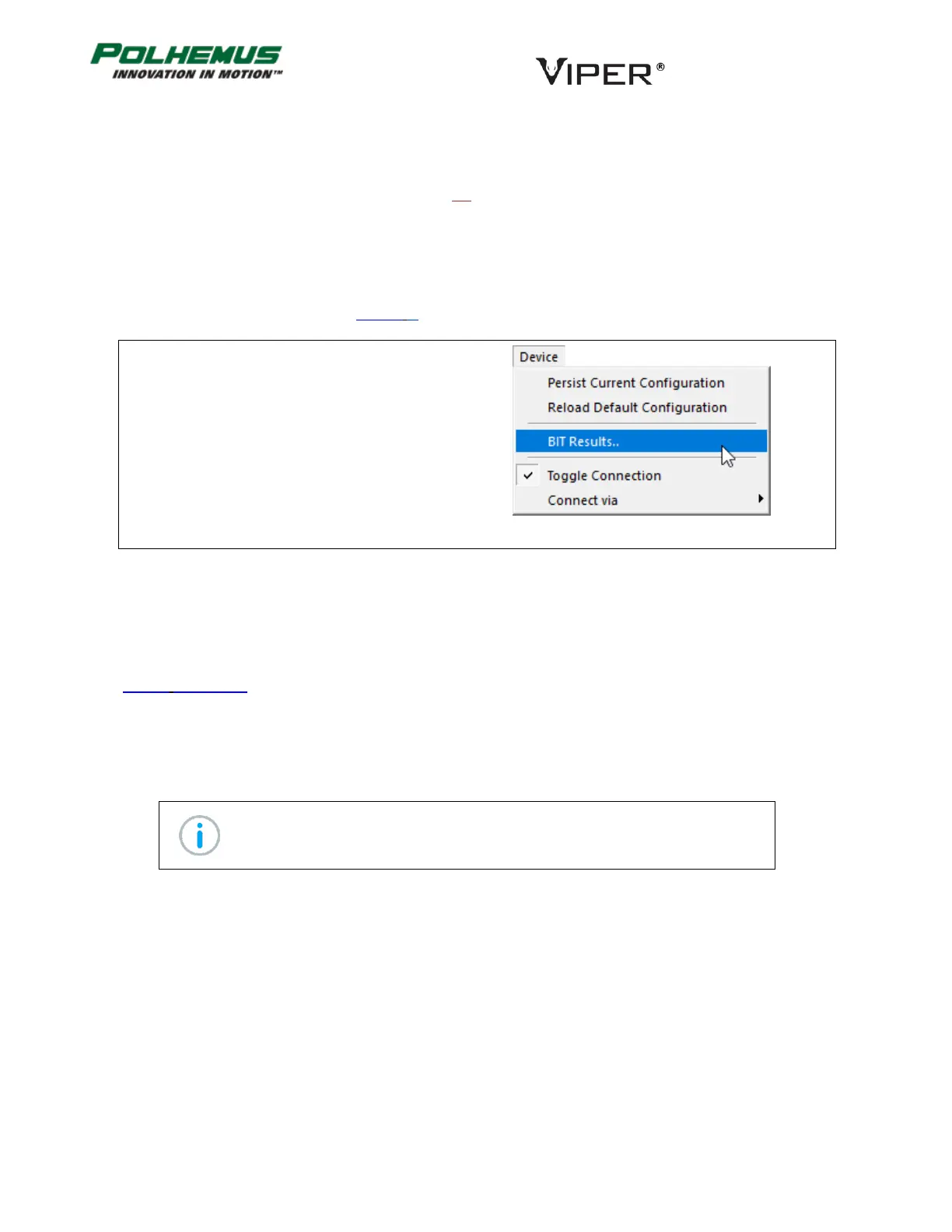 Device Menu→BIT Results