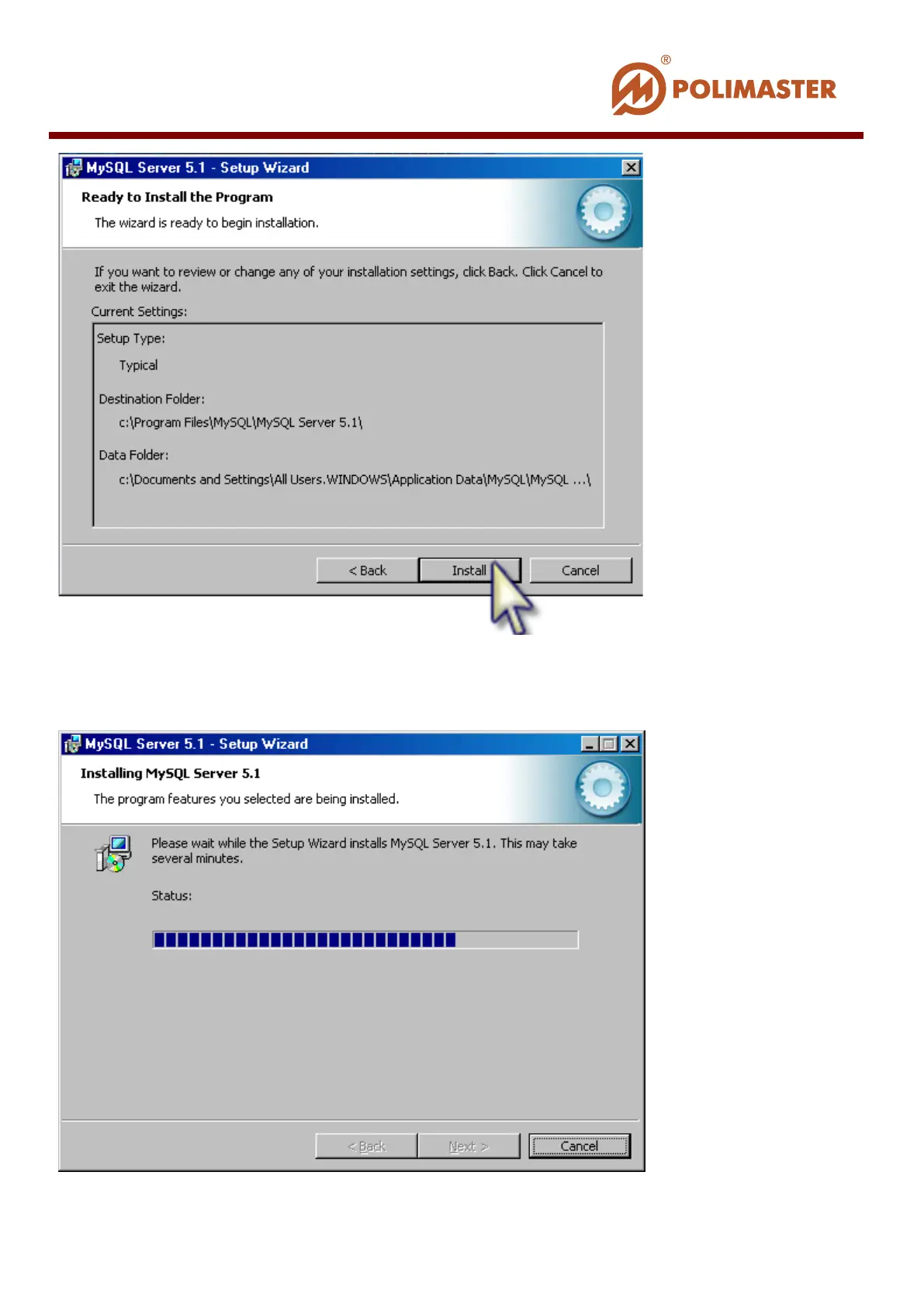 Press Install to start installation of “MySQL Serversoftware. Process can take several