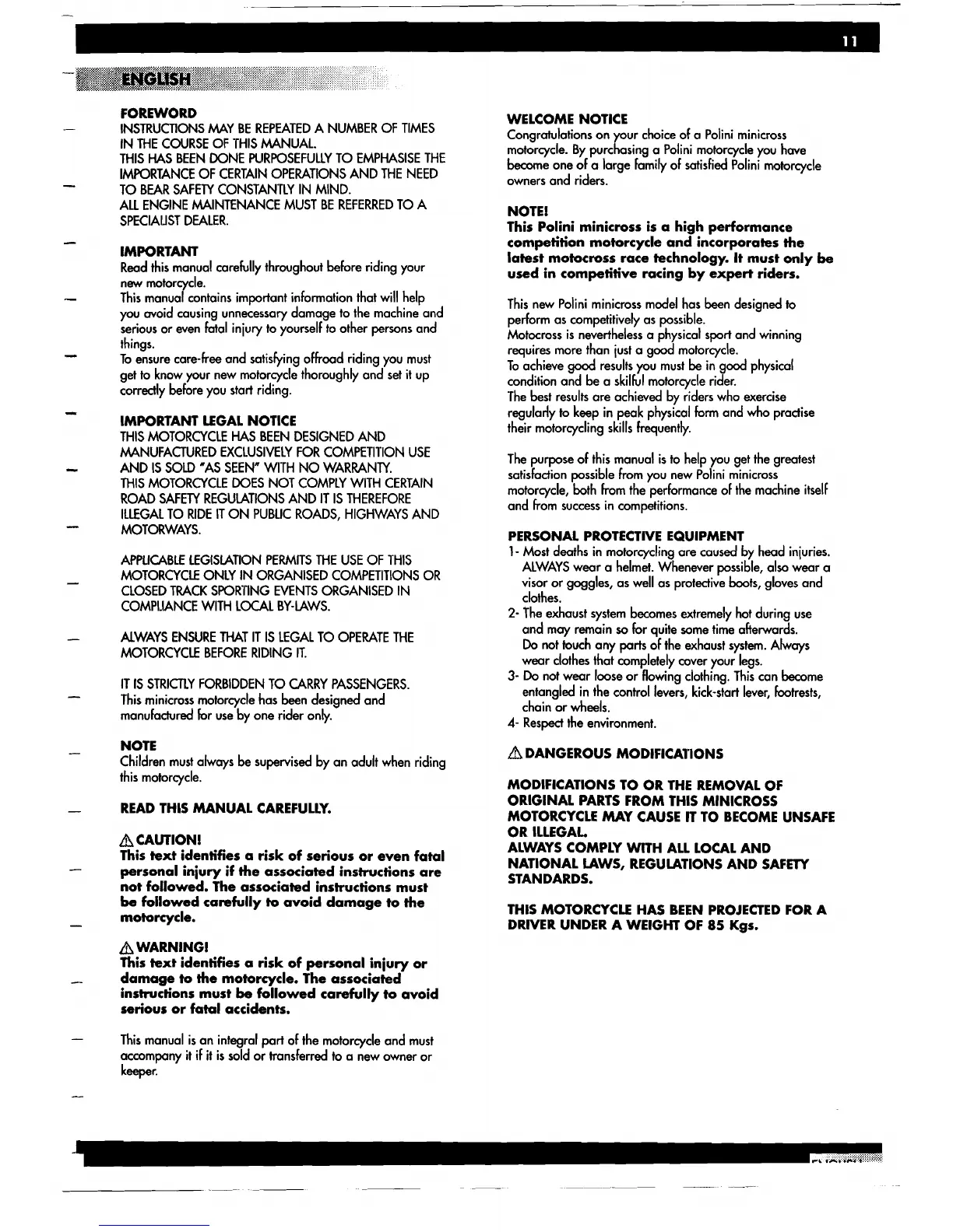 MOTORCYCLE MAY CAUSE IT TO BECOME UNSAFE