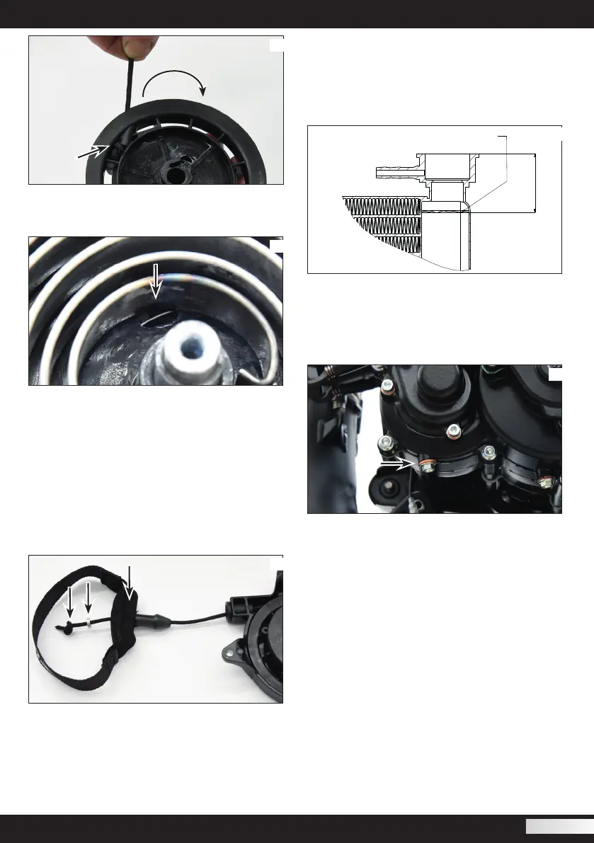 la corde à travers le trou du carter, insérer la poignée et faire un nœud