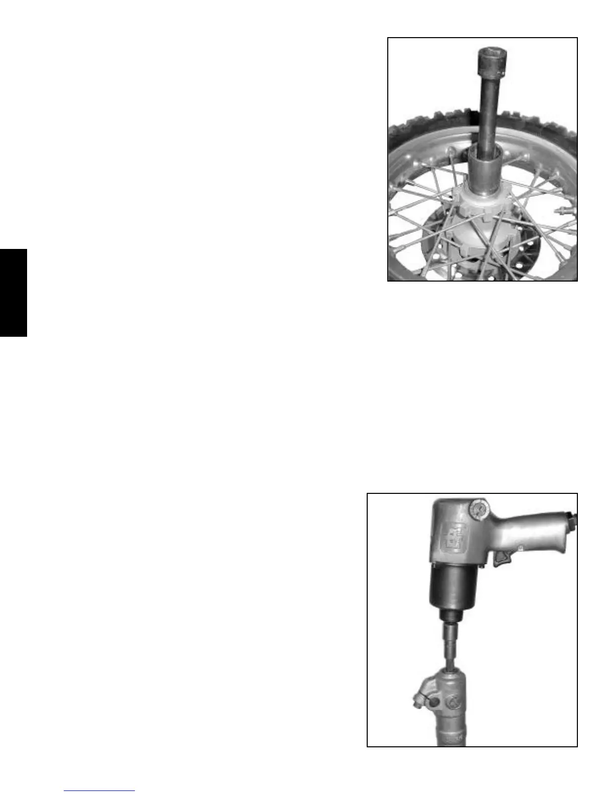 front wheel and axle, but do not tighten axle pinch bolt yet. Holding the motor-