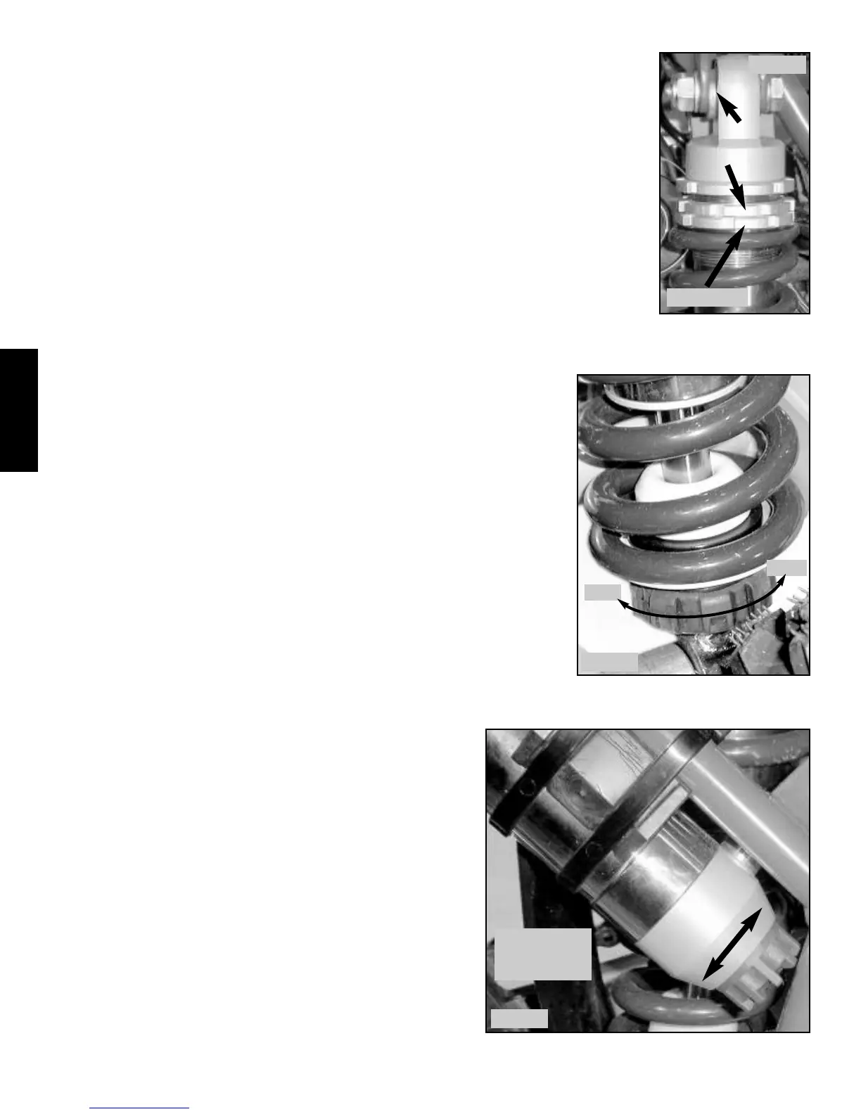 upper lock nut before adjusting the spring preload. Turning the spring adjusting nut clock-