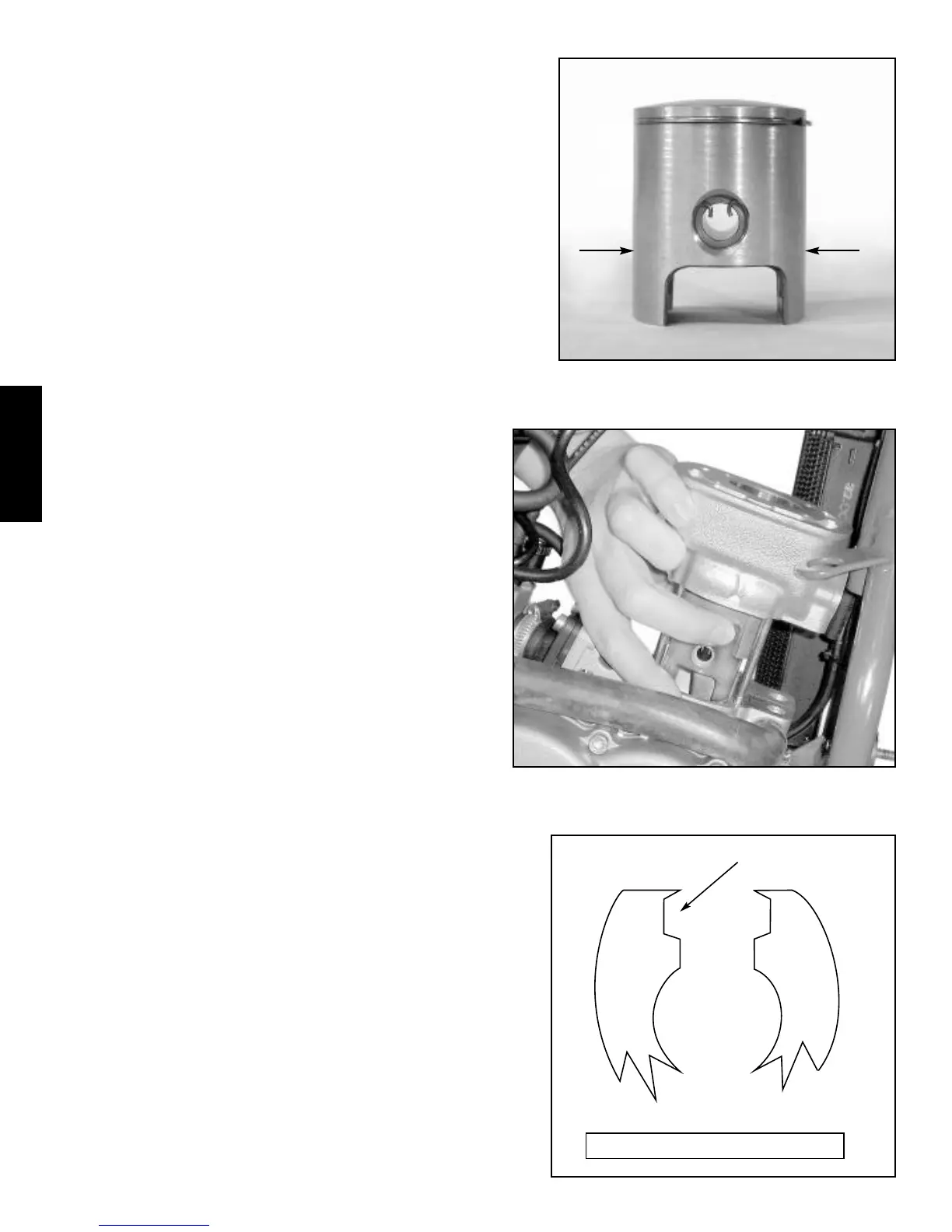 of piston, it must point to front of motorcycle. Lower piston over connect-
