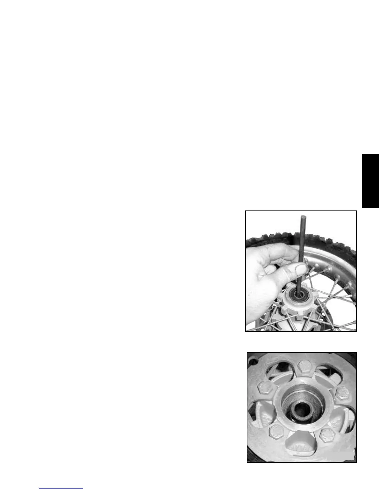threads will result. Take care not to lose spacers on either end of axle or against