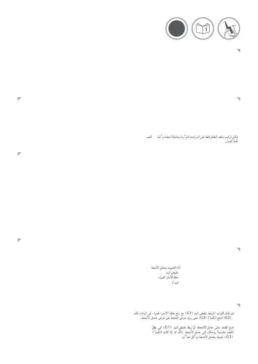 ﻞﻔﻄﻟا ﺪﻌﻘﳌ ﺔﺟارﺪﻟا ﺐﻛار ﺔﺴﻣﻼﻣ ﻢﺘﺗ ﻻ ﻰﺘﺣ ﻞﻔﻄﻟا ﺪﻌﻘﻣ ﻊﺿو ﻂﺒﺿ ﺐﺠﻳ •
