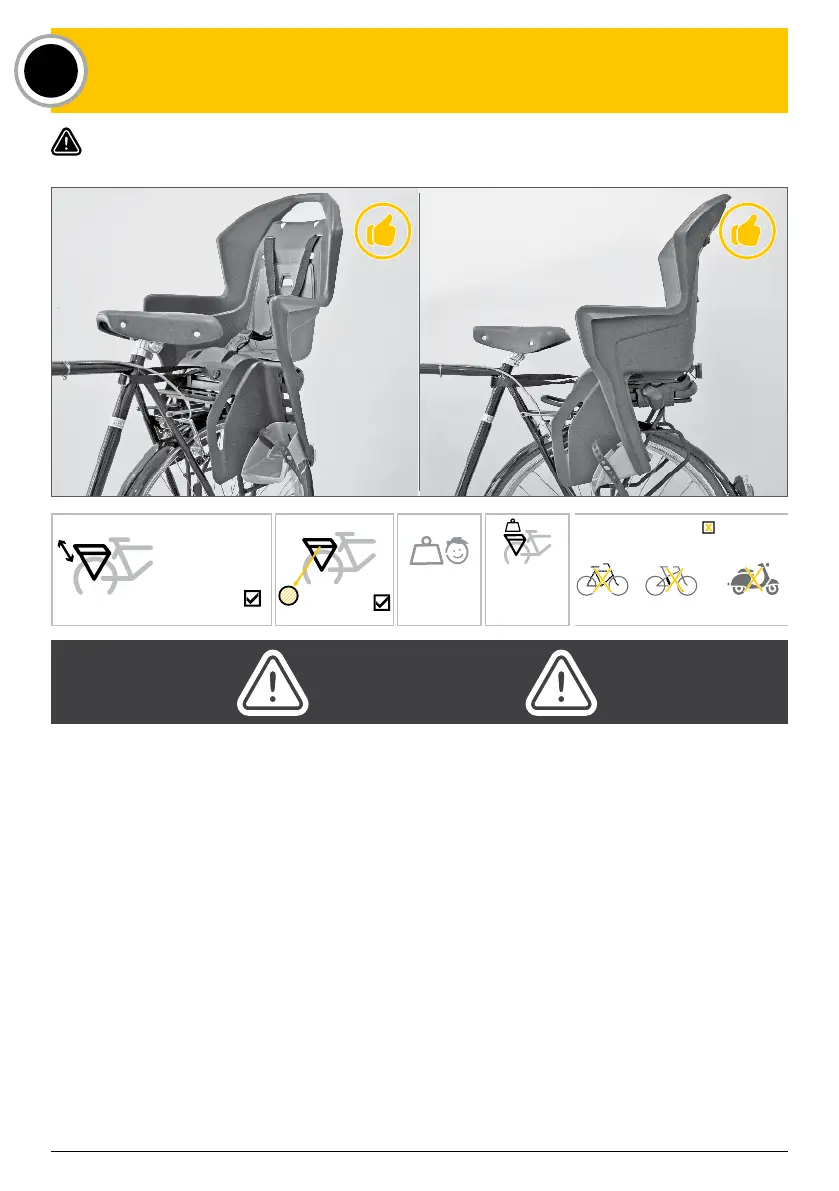 • Le vélo sur lequel est fixé le siège doit être en bon état de