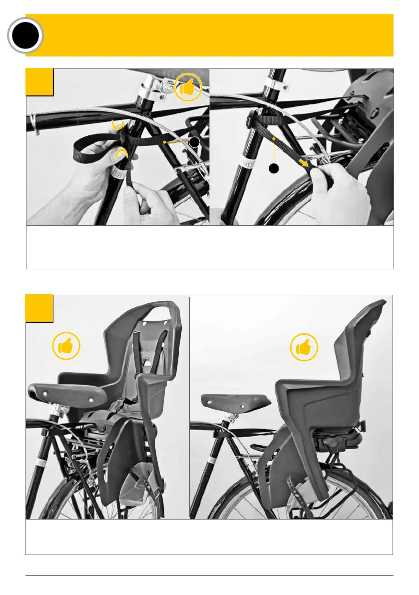 Passez le harnais pour le cadre du vélo (C) autour du tube de selle du cadre du vélo. Ajustez-le comme le montre l’image, sous
