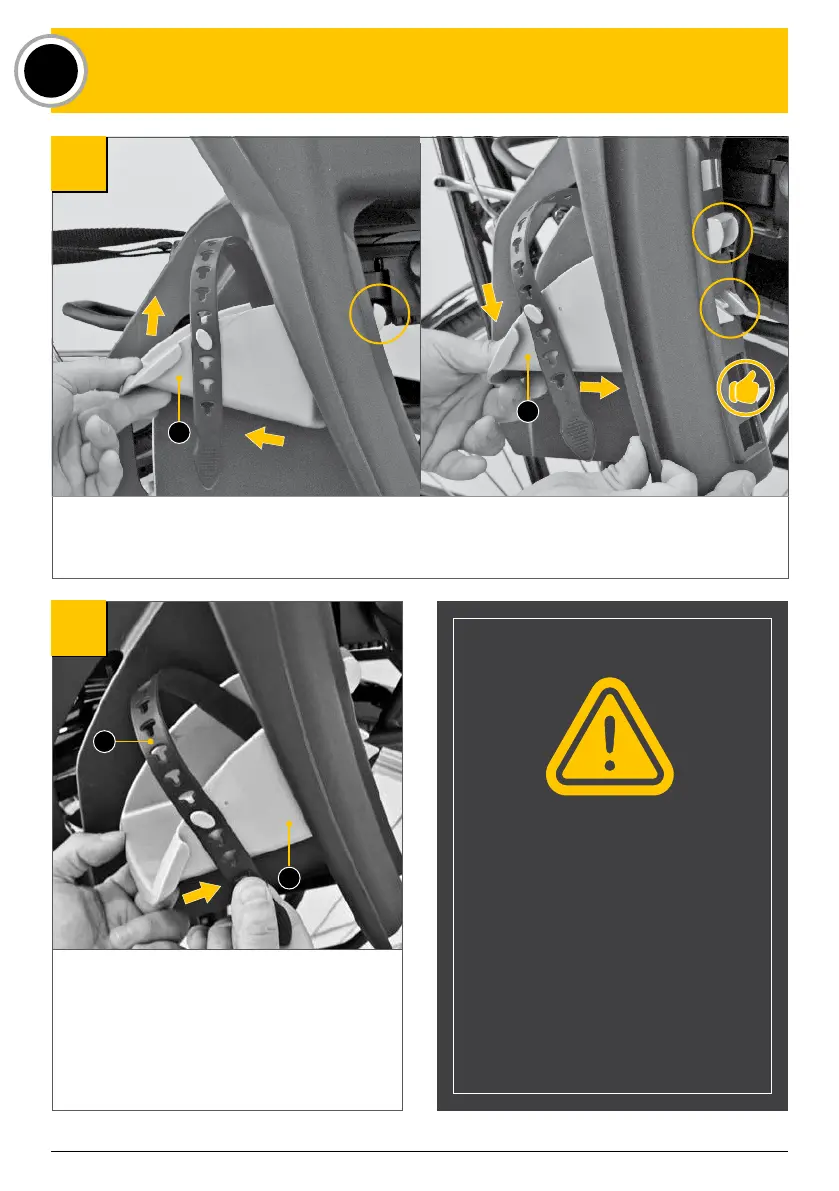 Pour remettre les repose-pieds sur l’une des quatre positions possibles, enclenchez d’abord le clip supérieur puis poussez le