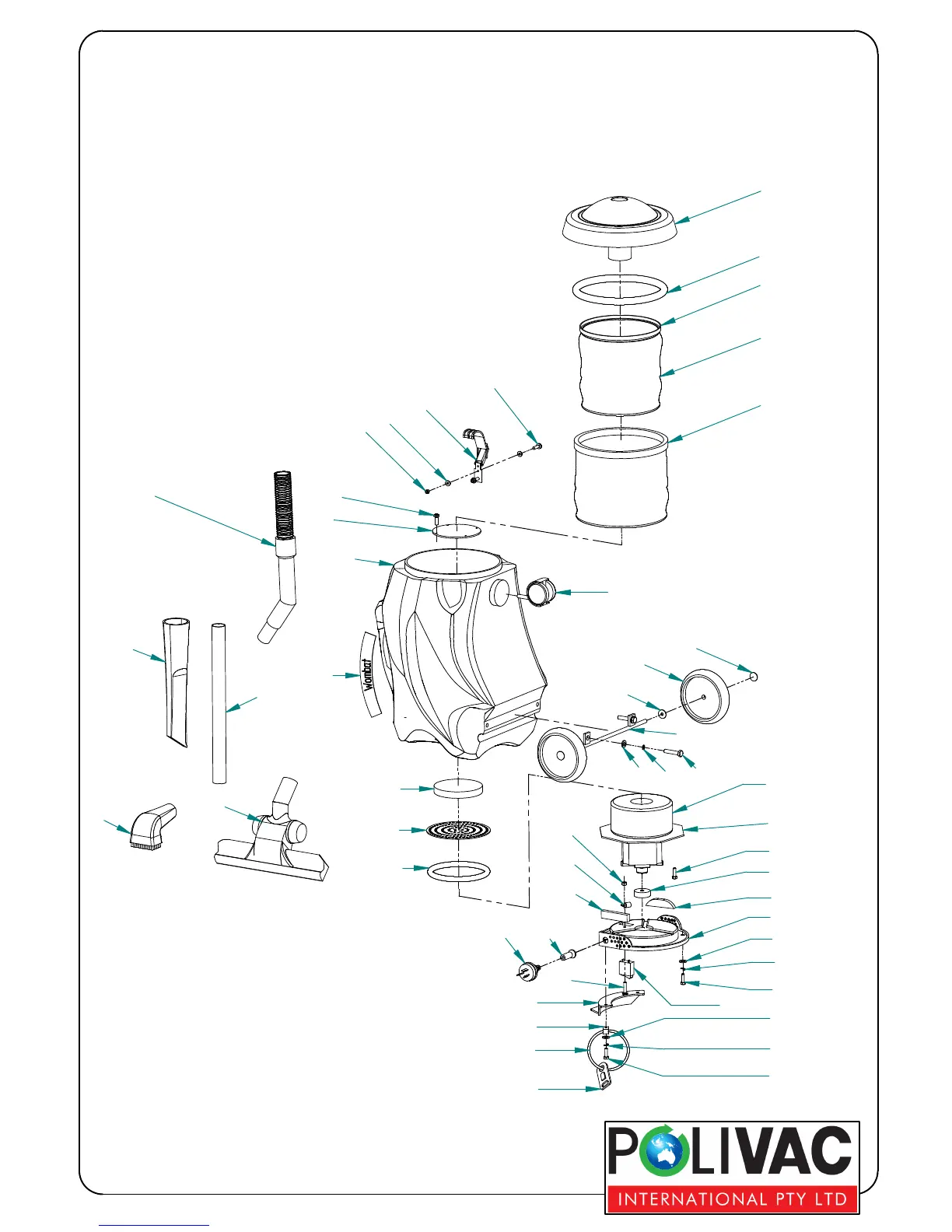 Polivac Wombat - Barrel Vacuum Cleaner Wombat Diagram and Parts List; Component Diagram