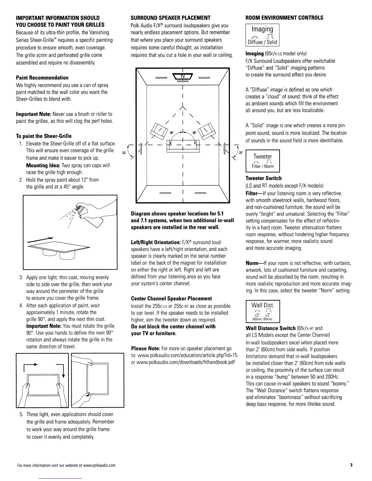 Polk Audio 265-rt - Grille Painting and Speaker Placement; Sheer-Grille Painting Guide; Surround Speaker Placement and Orientation; Room Environment Controls
