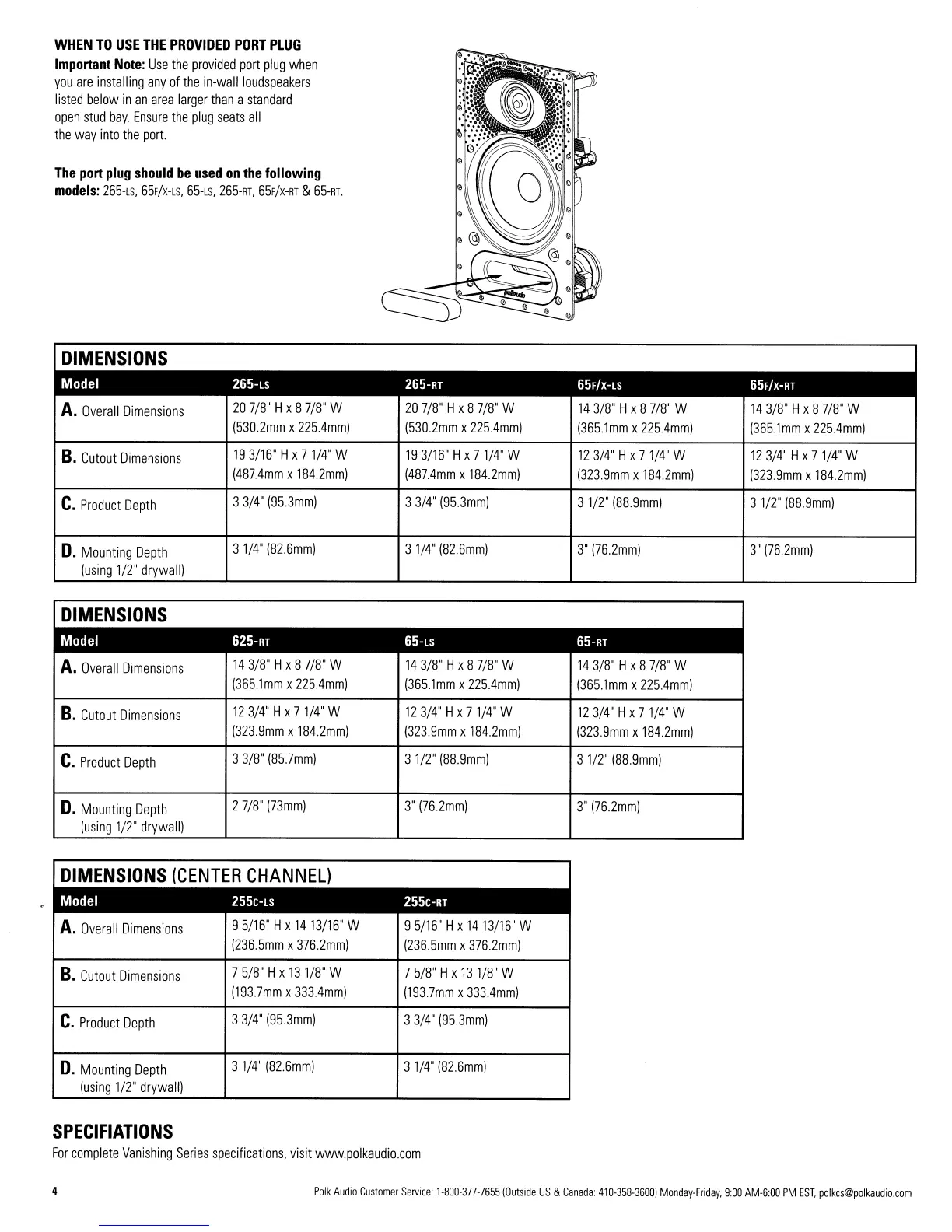 Polk Audio 265-rt - Speaker Dimensions and Specifications