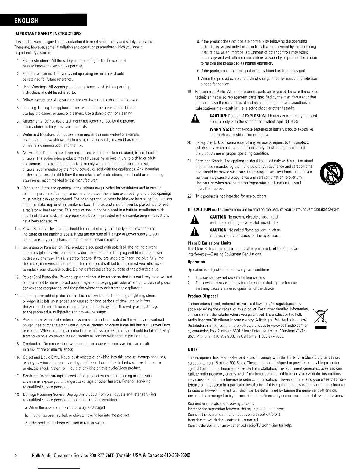 Polk Audio 6000 - Important Safety Instructions