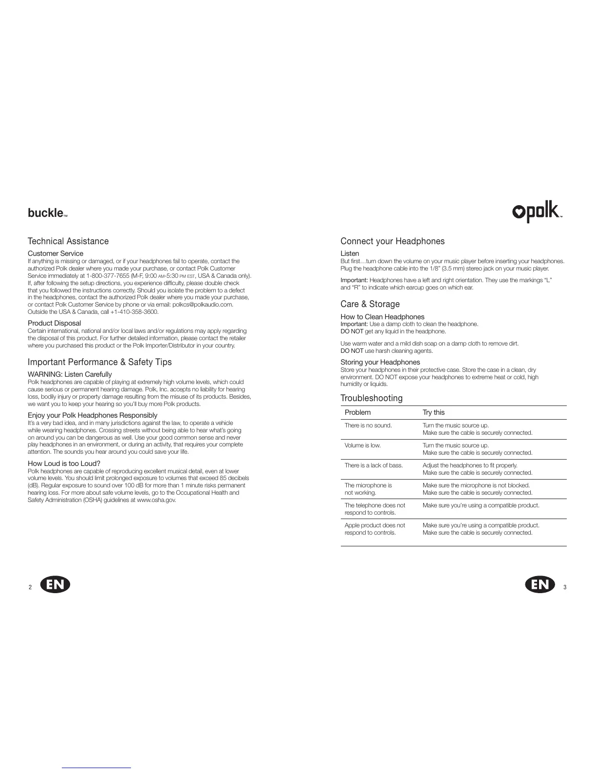 in the headphones, contact the authorized Polk dealer where you made your purchase,