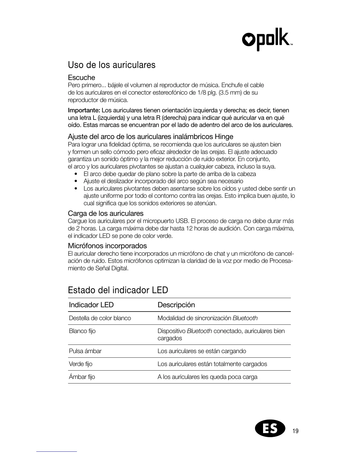 Cargue los auriculares por el micropuerto USB. El proceso de carga no debe durar más