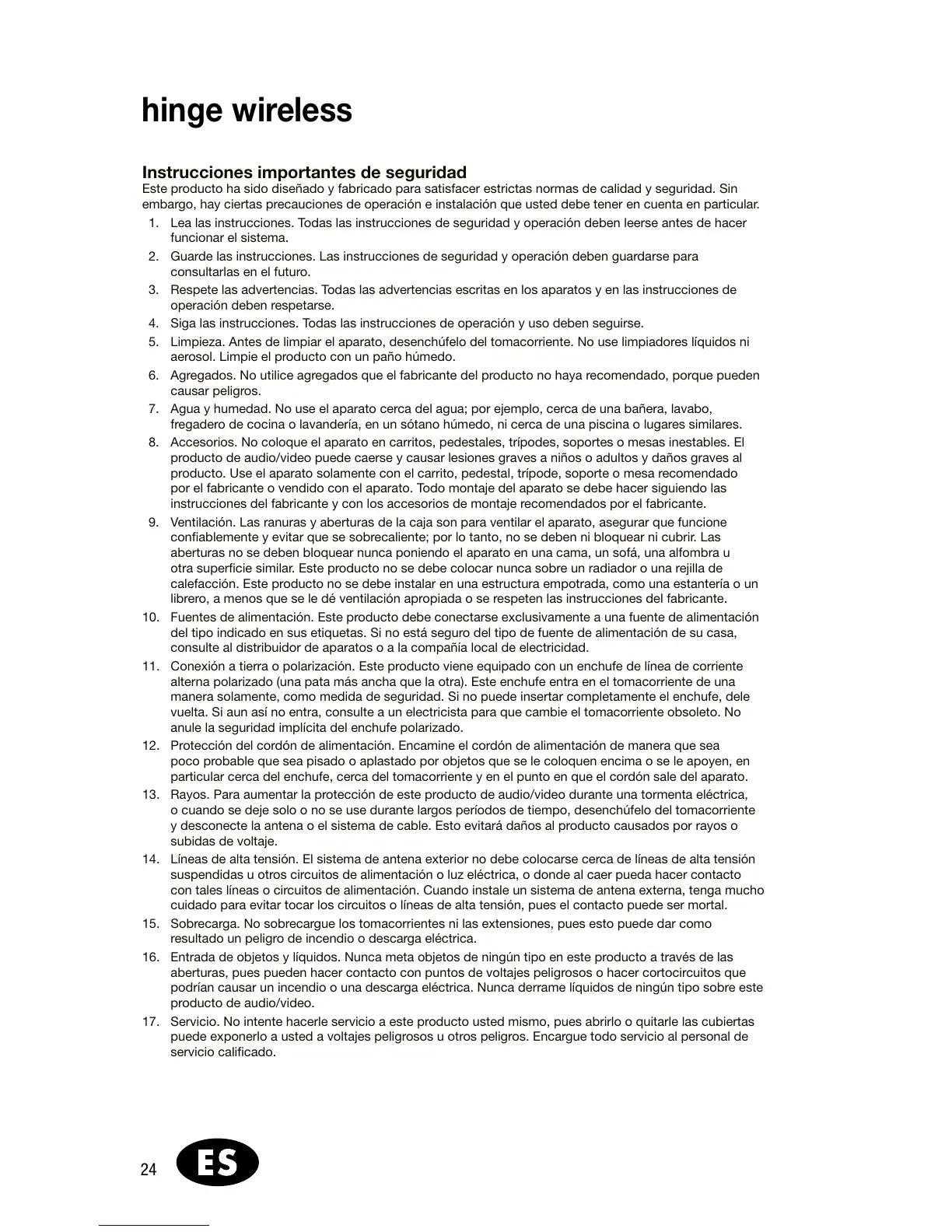 17. Servicio. No intente hacerle servicio a este producto usted mismo, pues abrirlo o quitarle las cubiertas