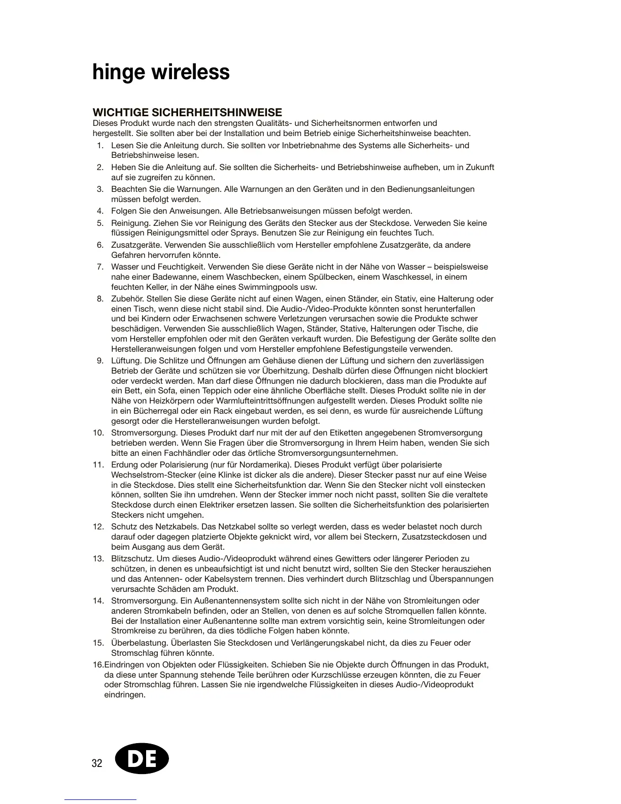 16. Eindringen von Objekten oder Flüssigkeiten. Schieben Sie nie Objekte durch Öffnungen in das Produkt,