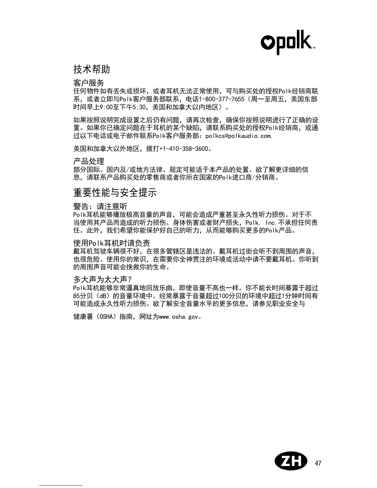 任。此外,我们希望你能保护好自己的听力,从而能够购买更多的Polk产品。