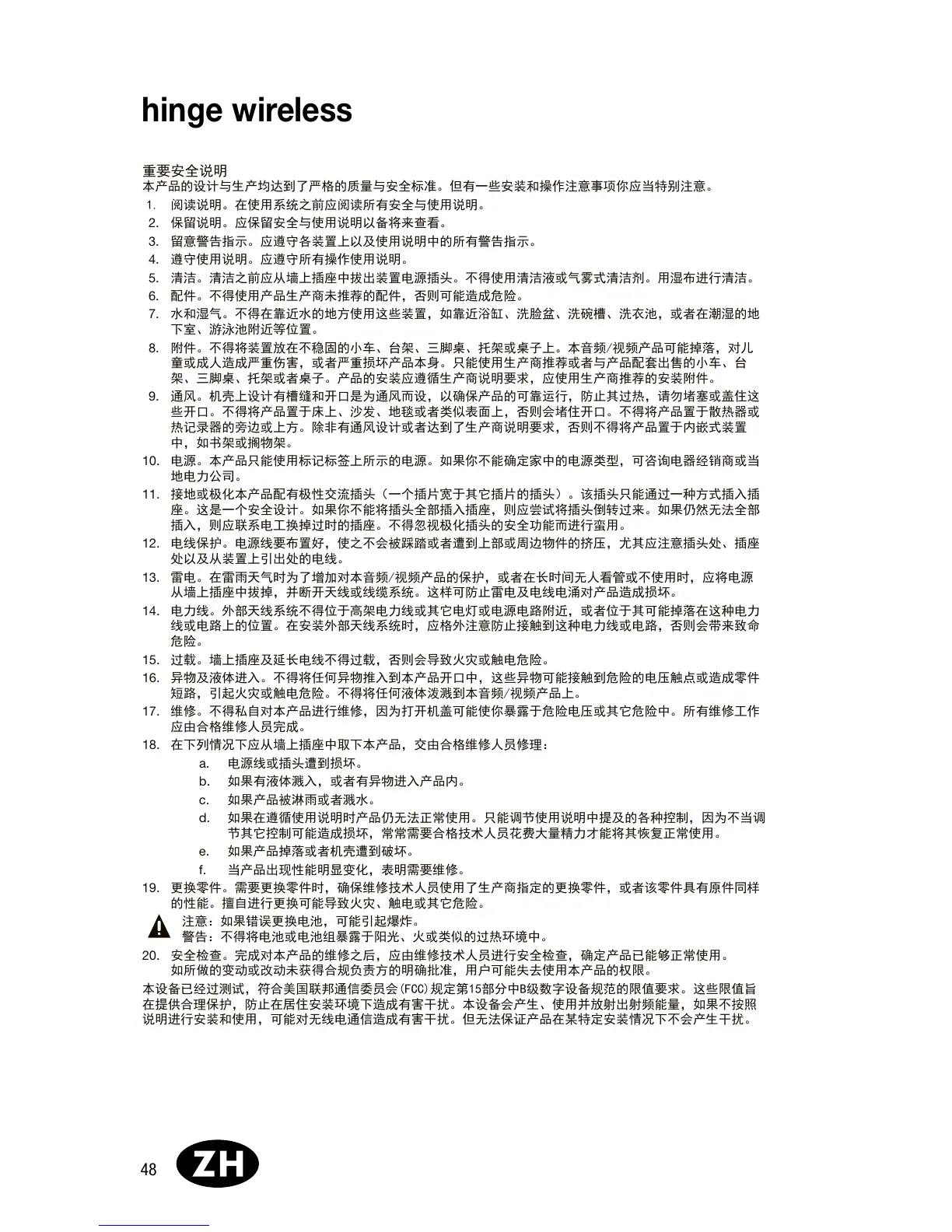 13. 雷电。在雷雨天气时为了增加对本音频/视频产品的保护,或者在长时间无人看管或不使用时,应将电源