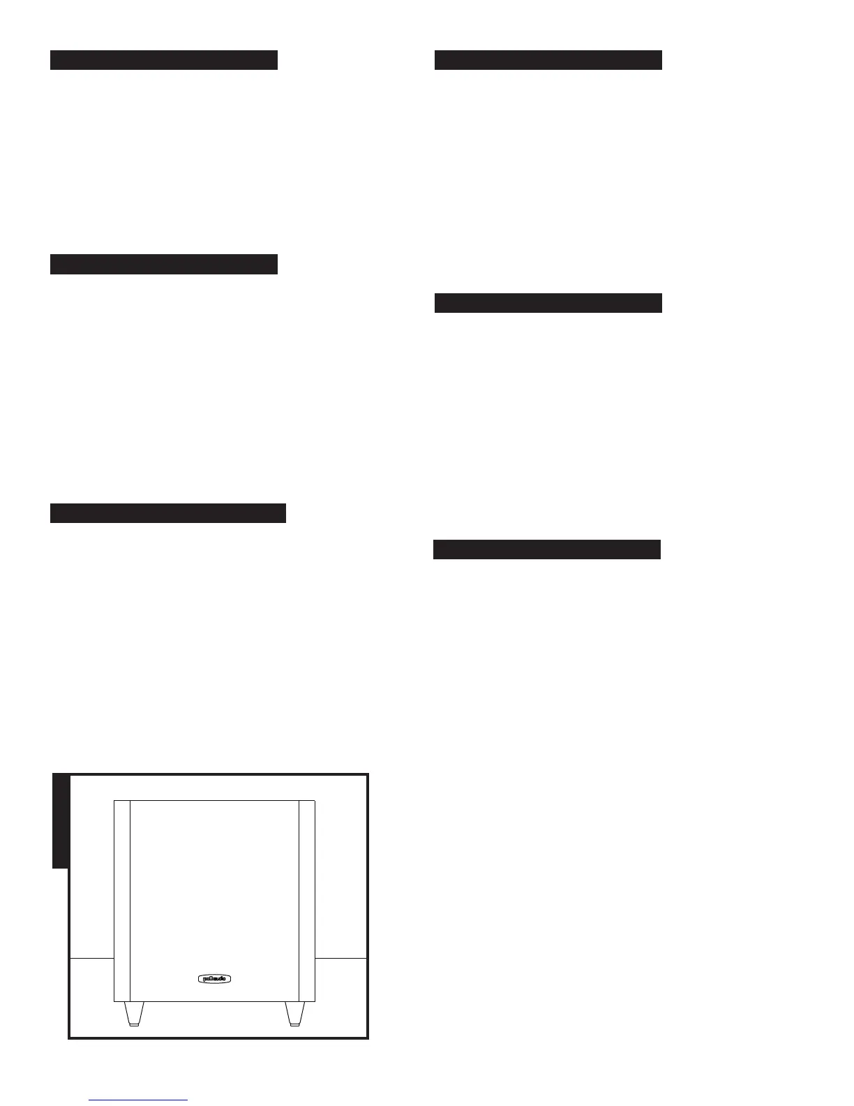 Place subwoofer upright on feet. Do not place amplifier side down.