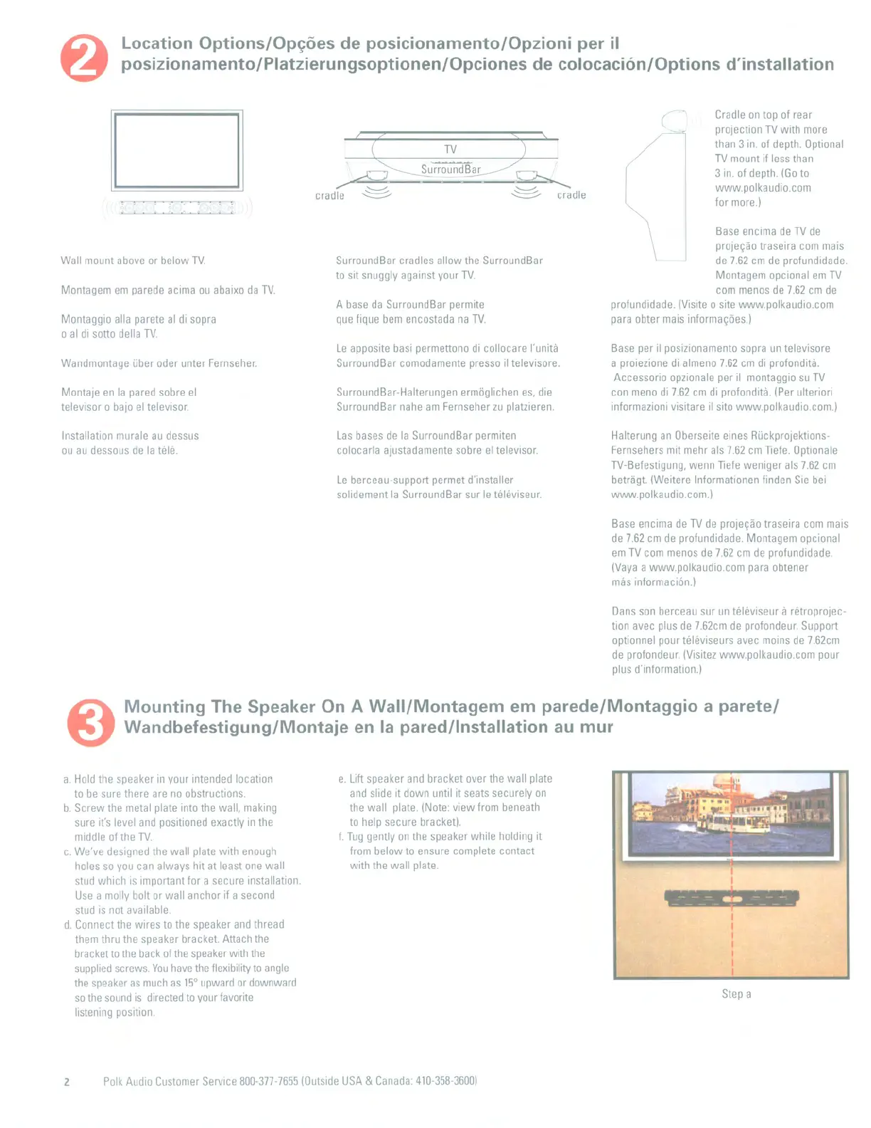 posizionamento/Platzierungsoptionen/Opciones de colocaci6n/Options d'installation