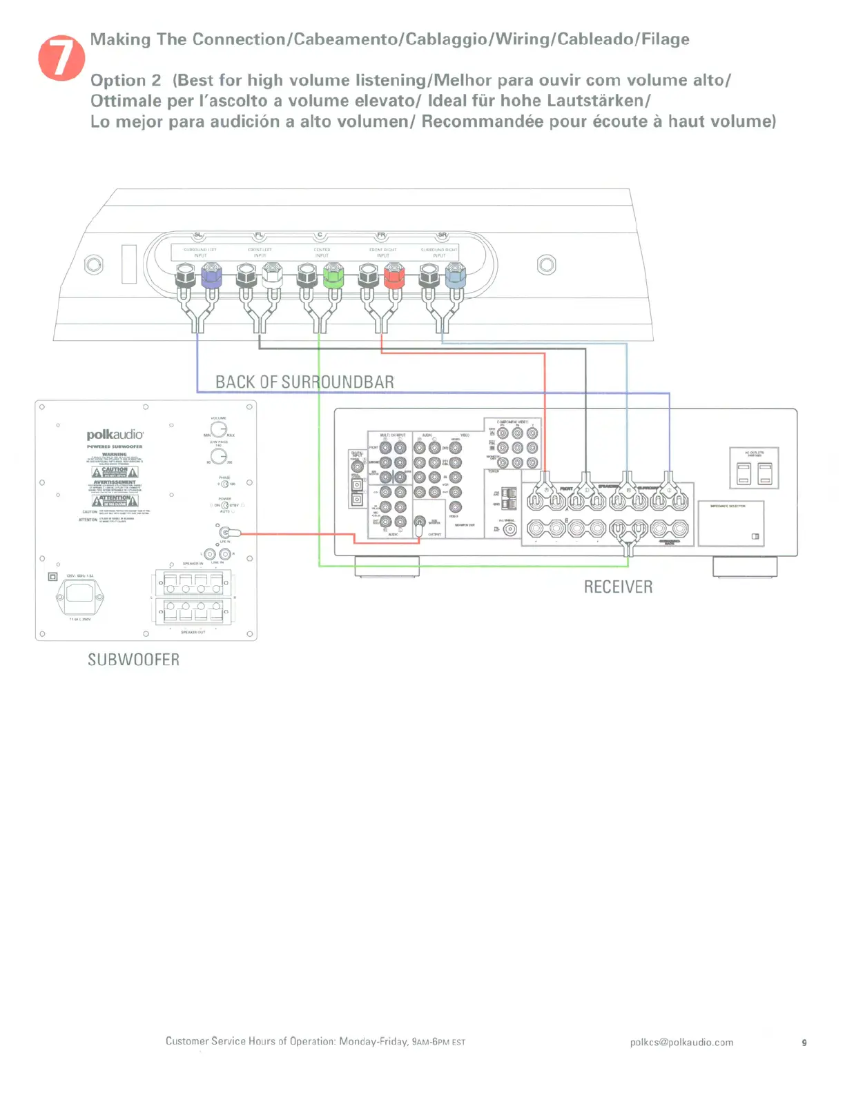 Polk Audio SURROUNDBAR - Making Connections: Option 2; High Volume Listening Wiring