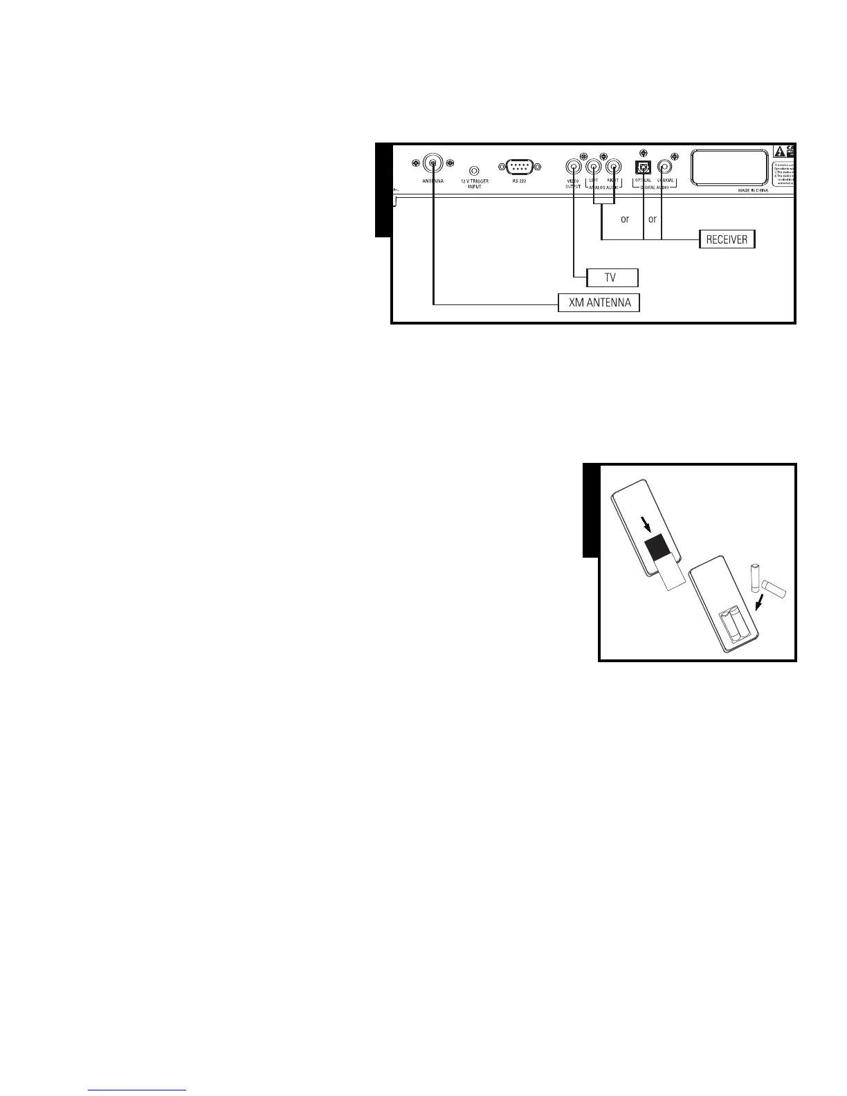 3. Connect the XM High-Gain Home Antenna to the jack labeled “ANTENNA” on the