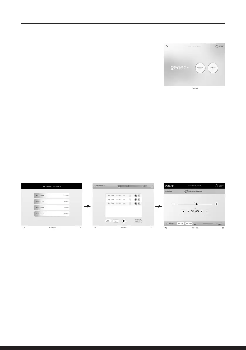 Press the recommended button to reach the list of the 3 pre-set protocols: