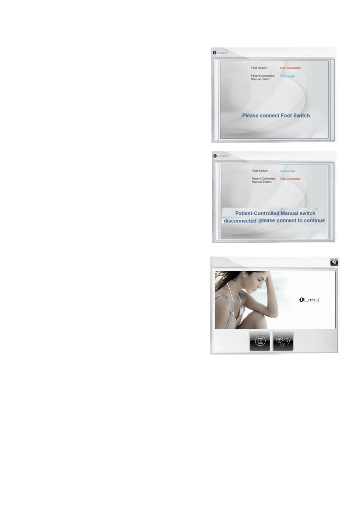 It is recommended to verify the functioning of touch screen keys before starting the treatment.