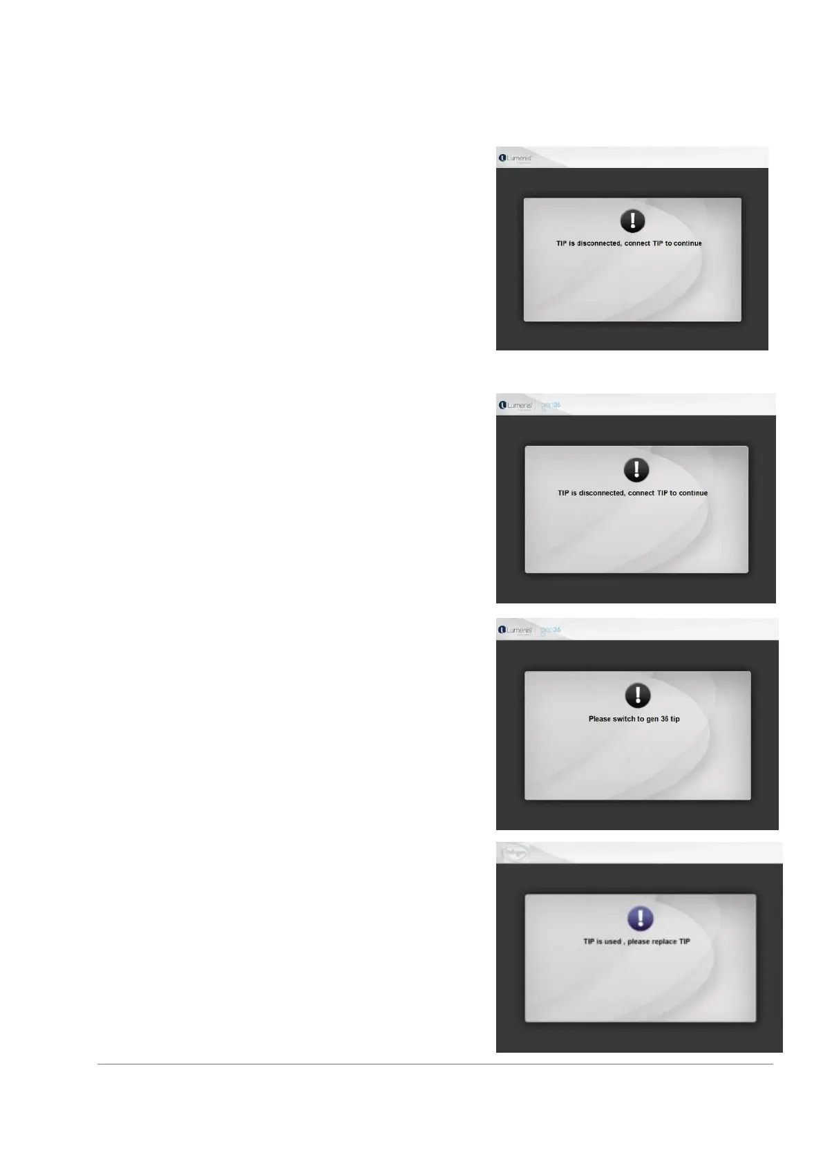 If a treatment tip is not connected, a warning message is