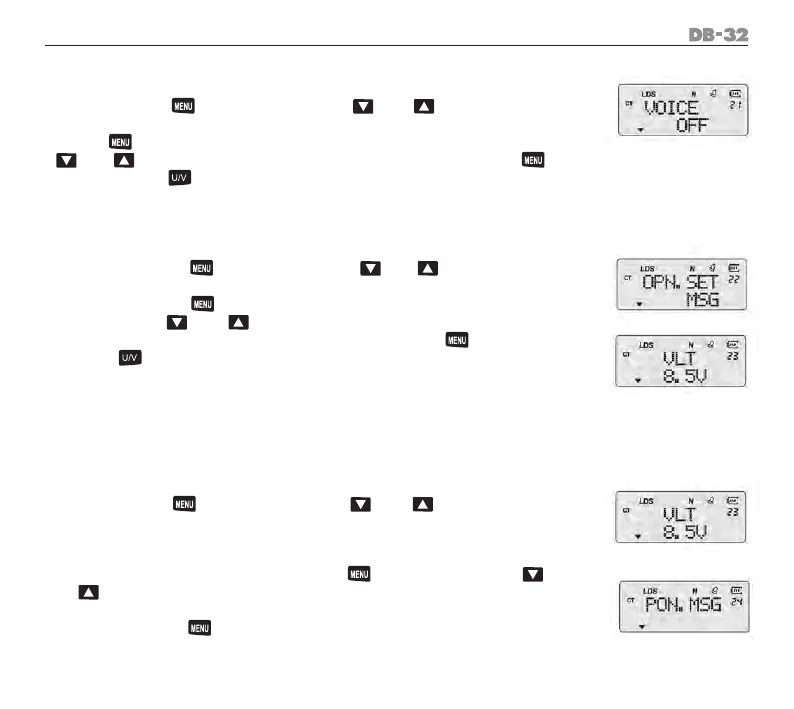menu 21 e visualizzare l’indicazione “VOICE/OFF” sullo schermo LCD. Premere