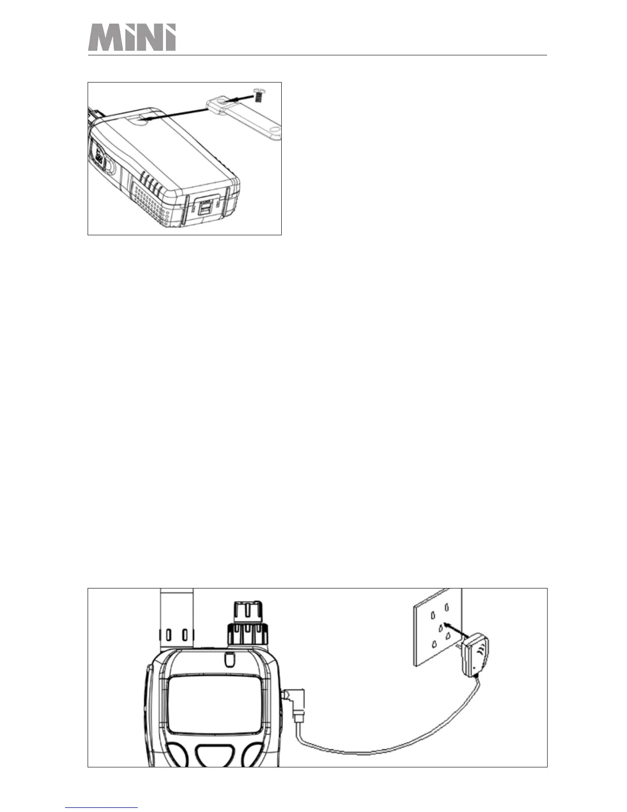 Collegare il caricabatterie al ricetrasmettitore come mostra-