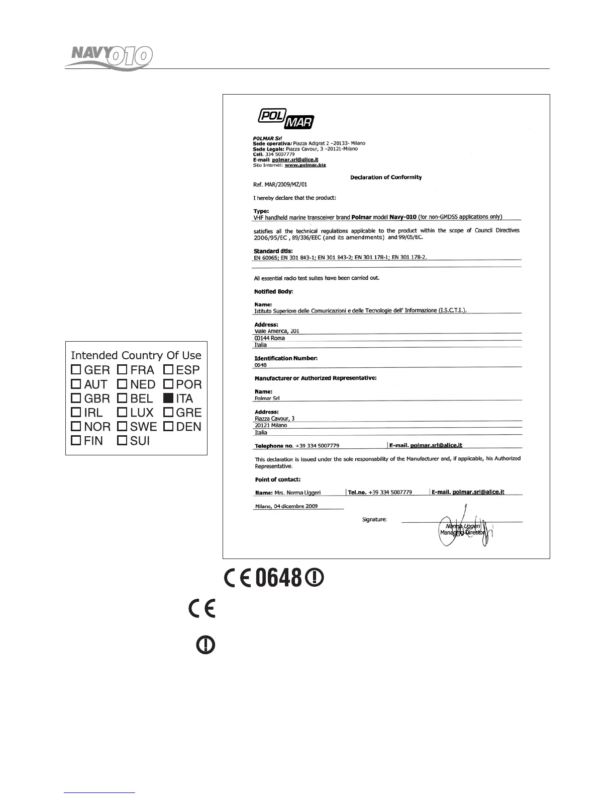 Hereby Polmar srl, declares that