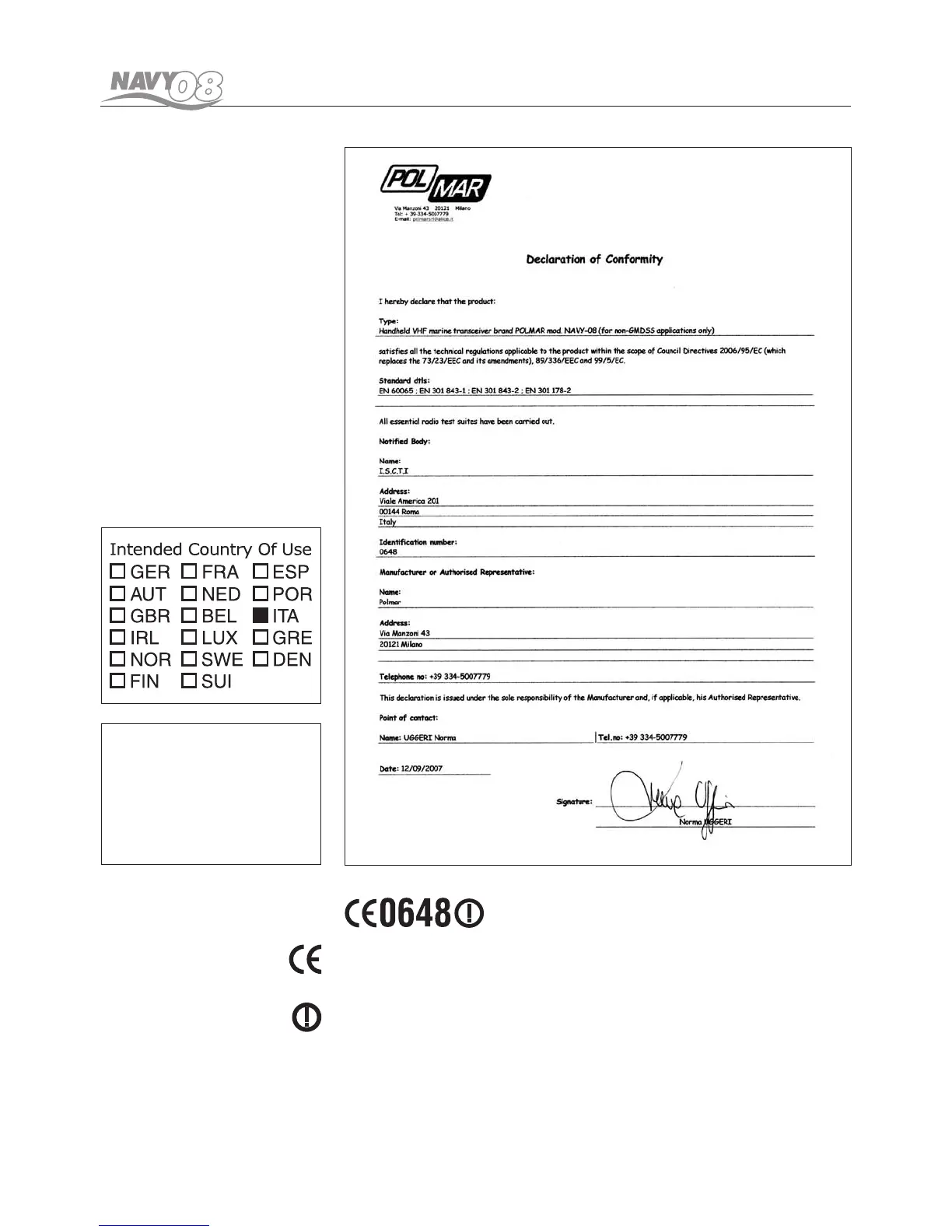Hereby Polmar srl, declares that