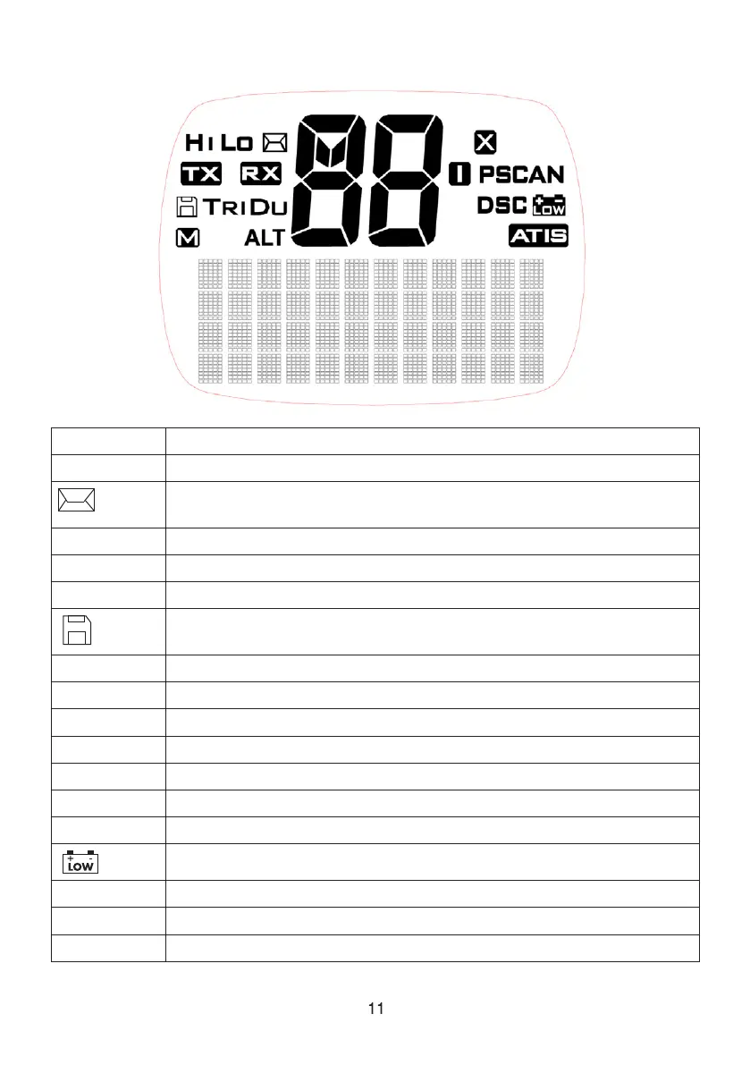 HI LO Transmission power high (HI) 25W or low (Lo) 1W.