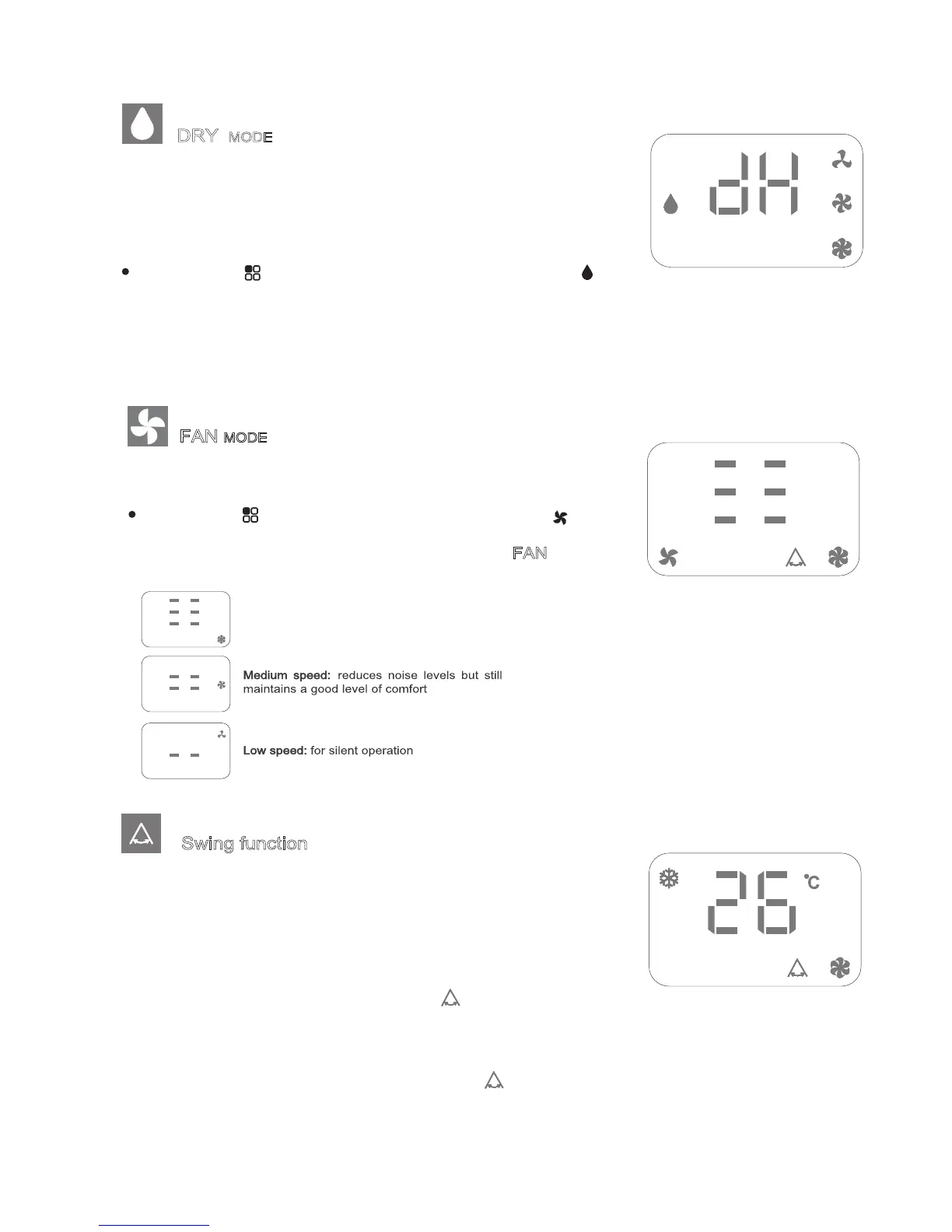 • Press the swing button - the swing display