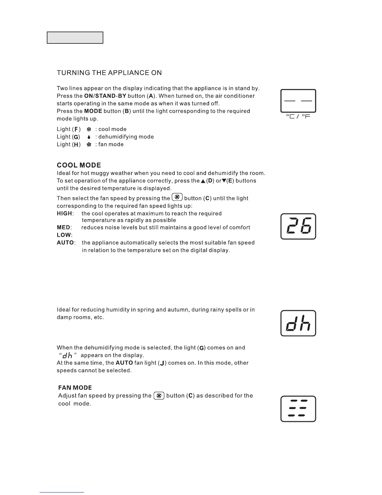 In dehumidifying mode the appliance must have the exhaust hose fitted to