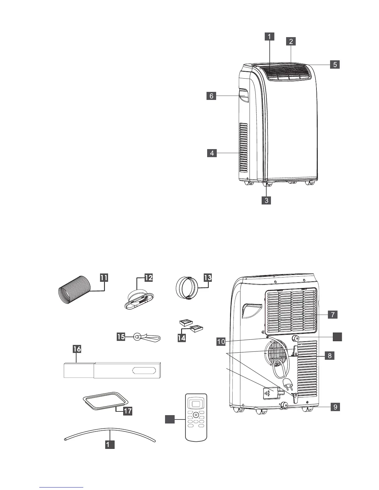18 Evaporator drain (only used when unit in dehumidifying mode)